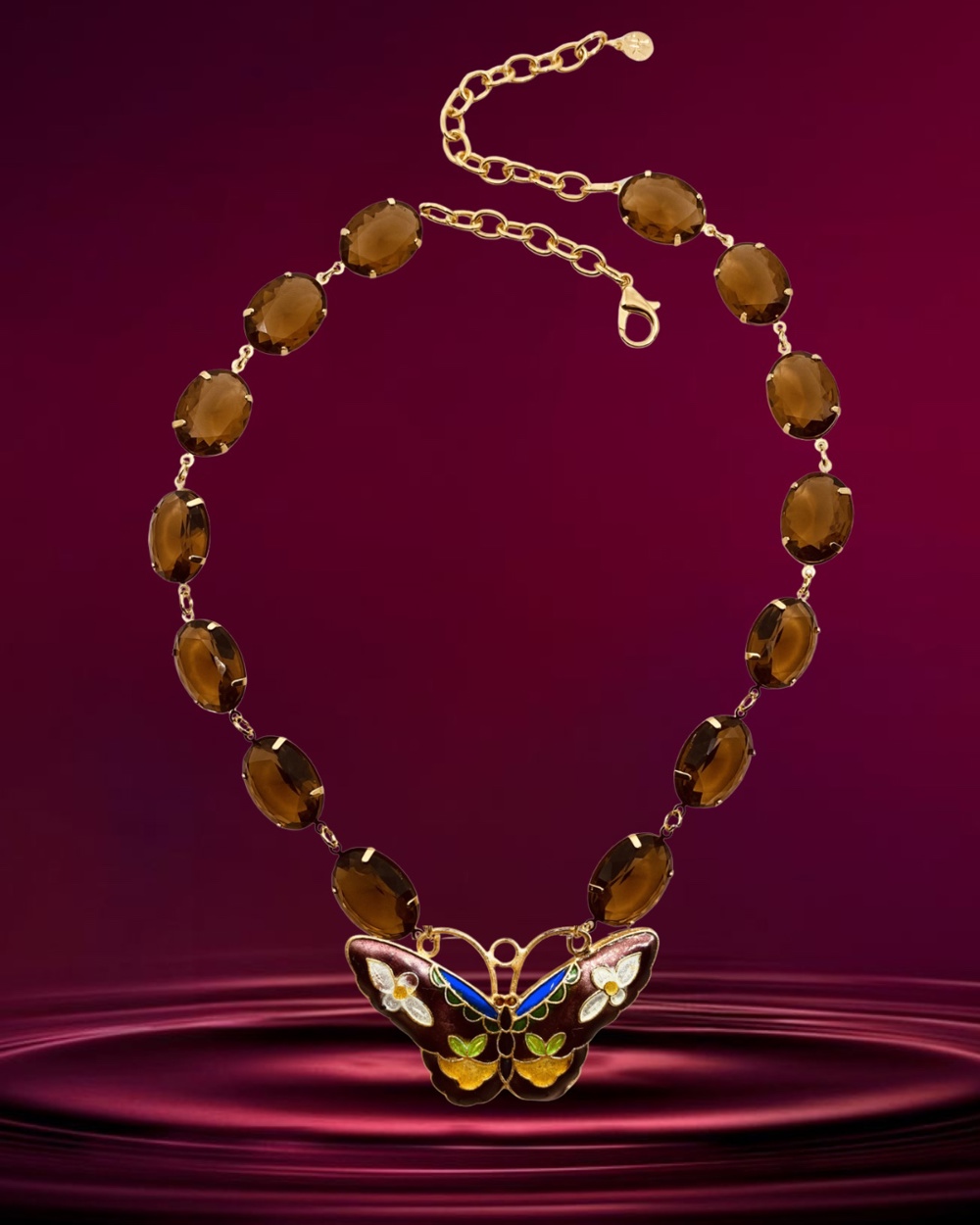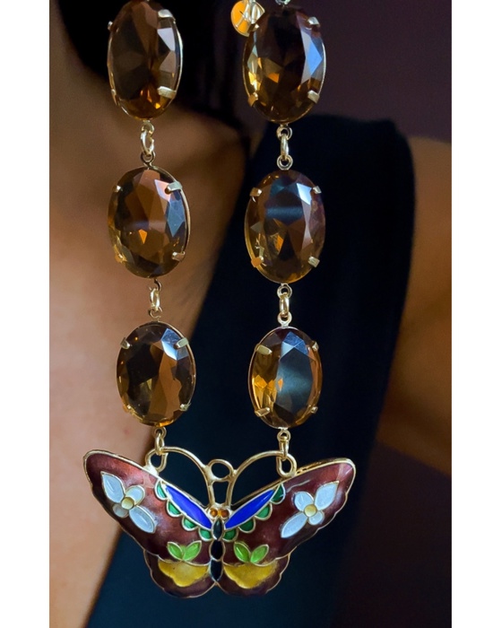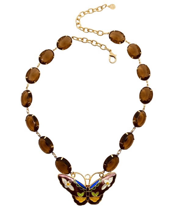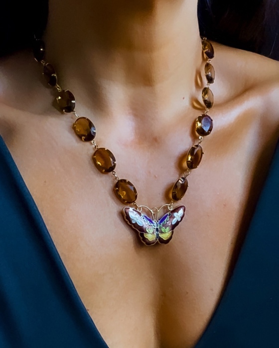 Colar borboleta , cristais marrom