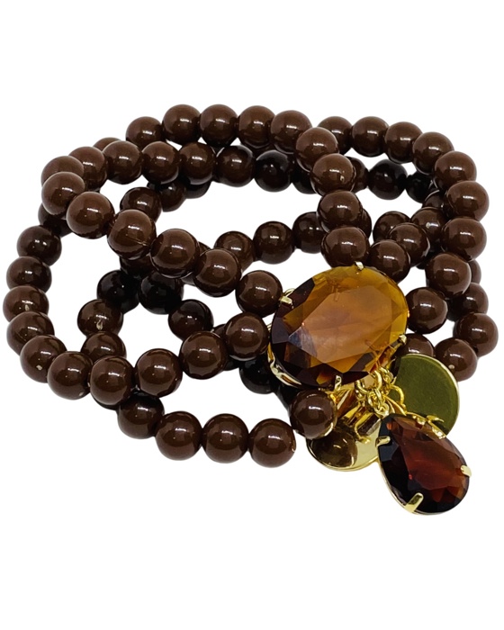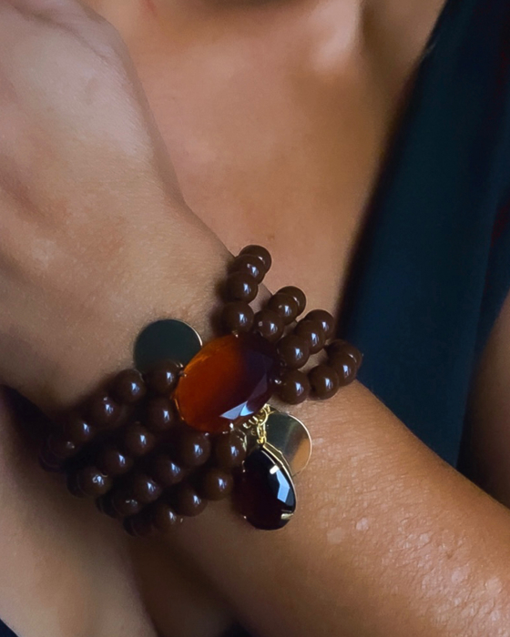 Pulseira ajustavel, pedras em resinas marrom , cristais colorado, medalhas
