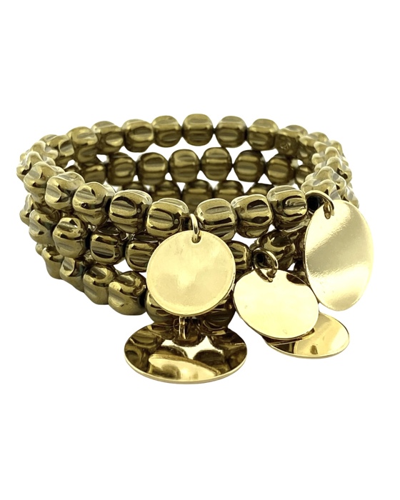 Kit com 3 pulseiras em pedras hematitas e medalhas