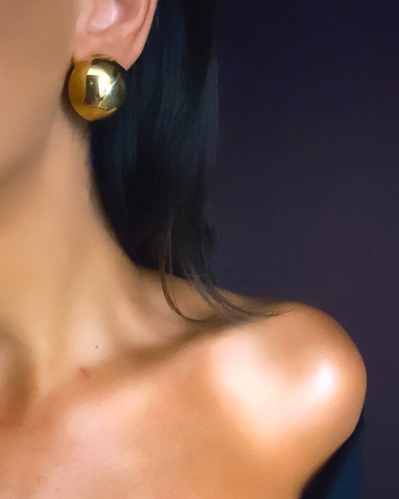 Brinco meia bola banho ouro