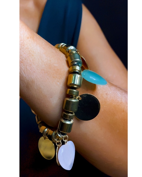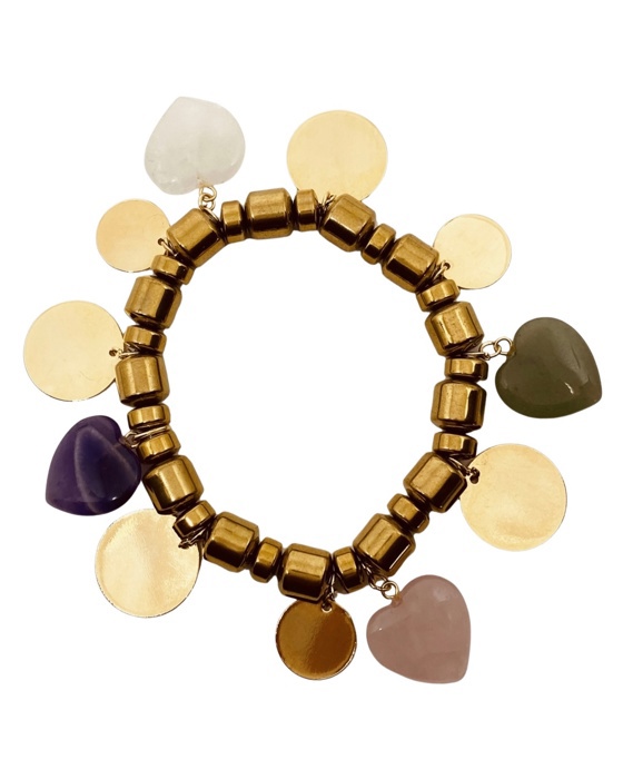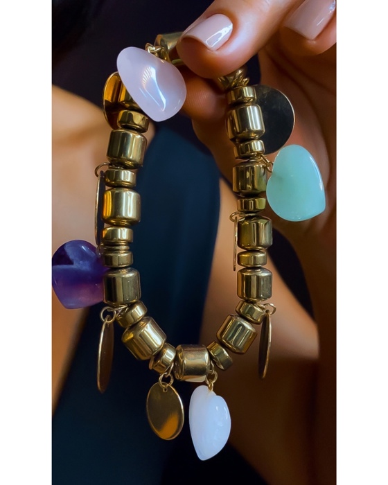 Pulseira pedras hematitas, coracoes em pedras naturais, medalhas