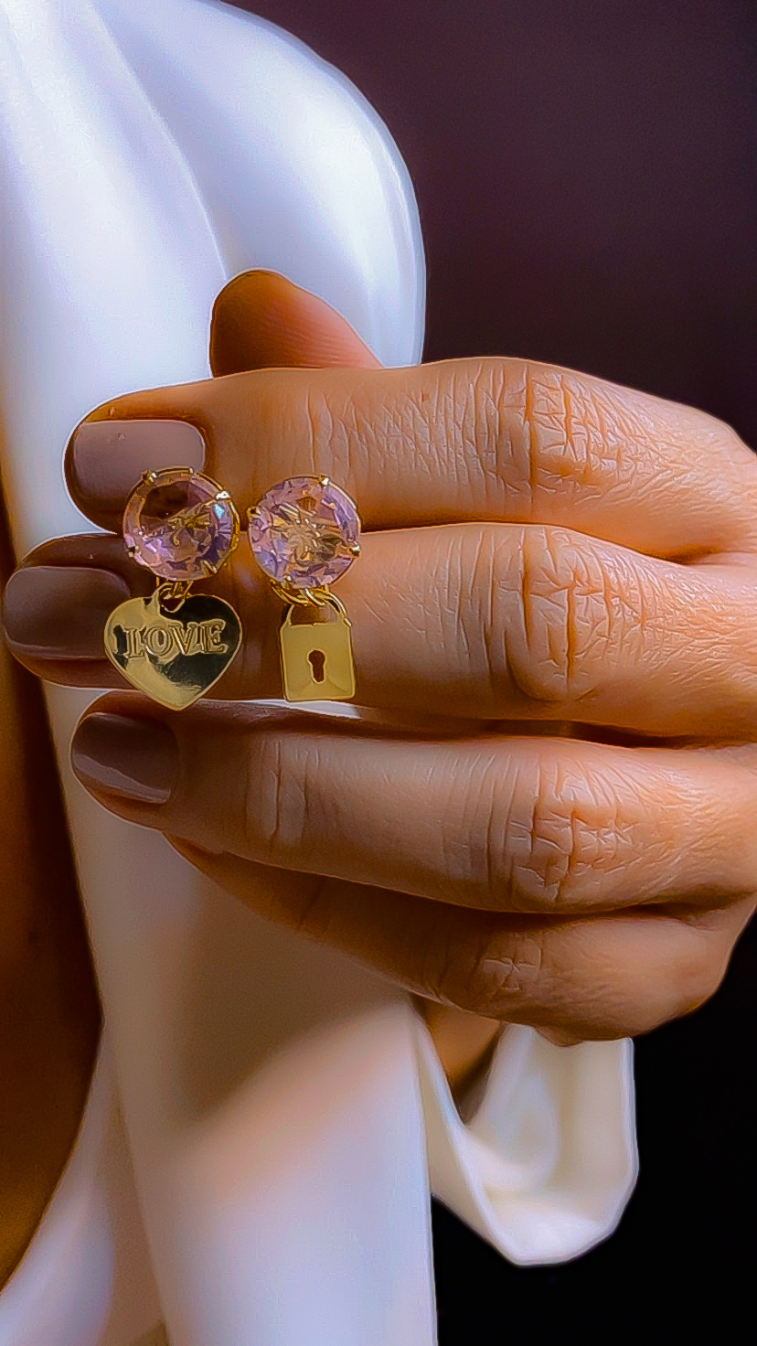 Brinco cristal rosa 10mm
