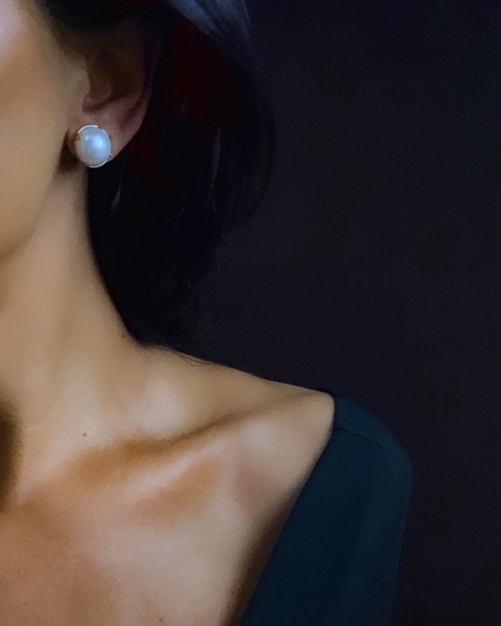 Brinco botao em perolas