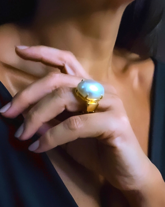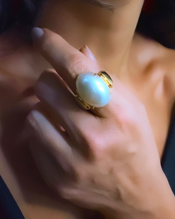 Anel ajustavel, perola oval 18x25
