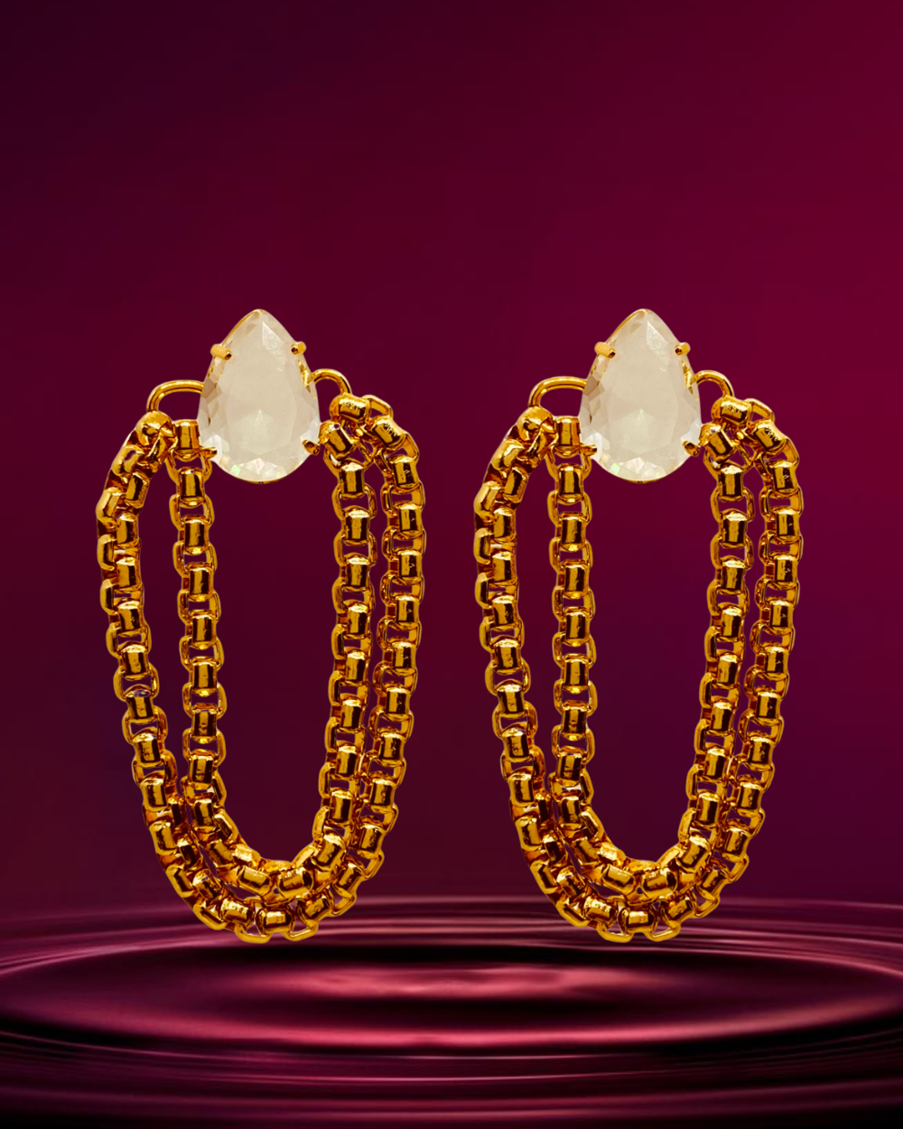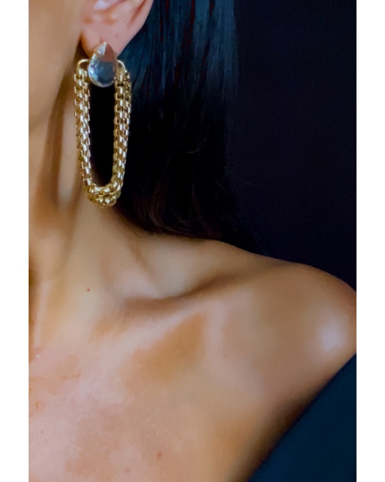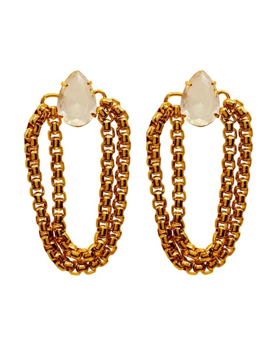 Brinco correntes balanco , cristais em gota