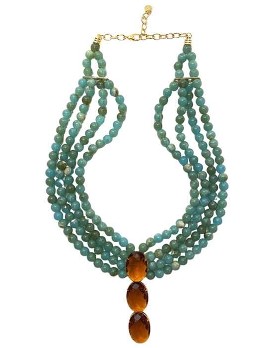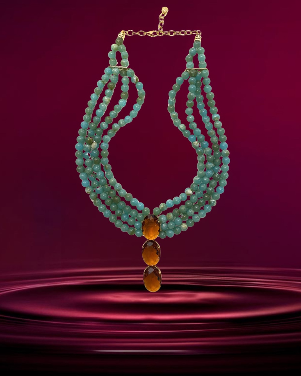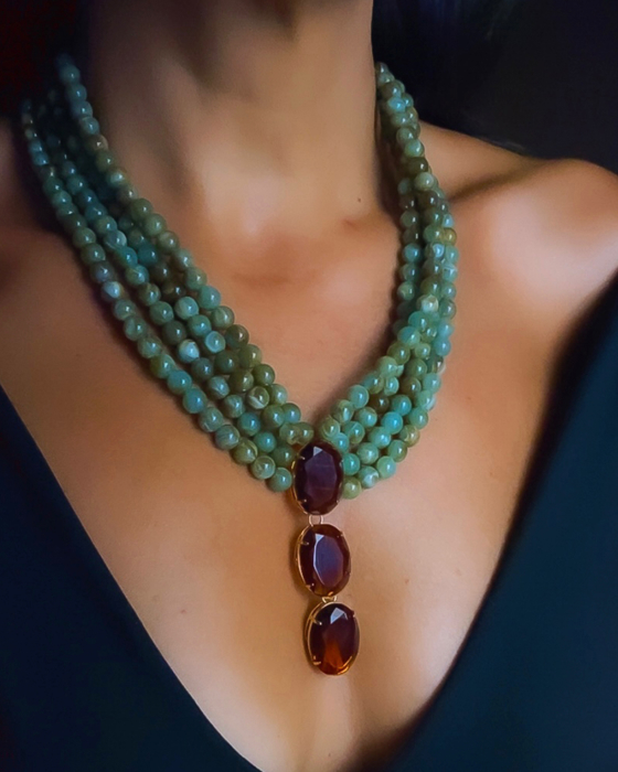 Colar maxi, pedras em resinas verdes, cristal colorado